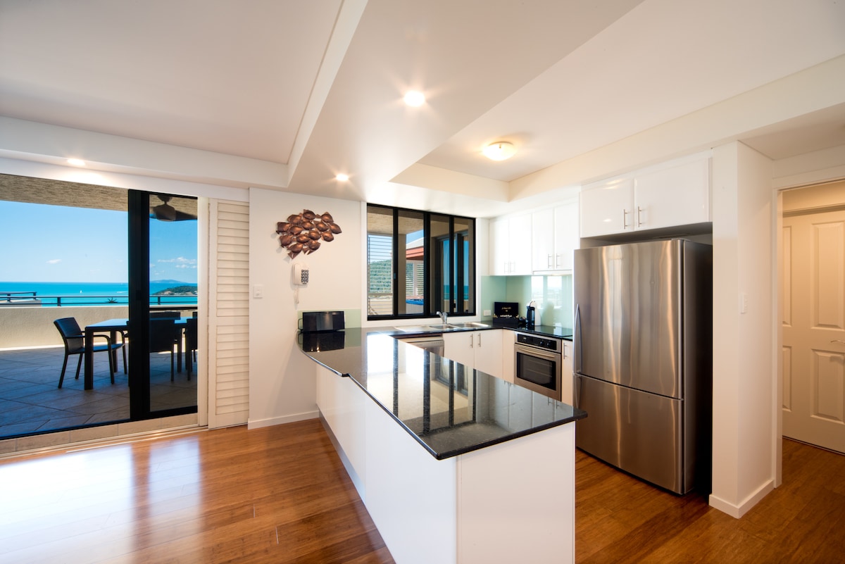 4 star modern apartments with uninterrupted views over the Coral Sea. Fully self contained apartment with modern appliances in kitchen, en-suite in main bedroom, all linen, Free Wifi, laundry & Dryer. Two large pools including infinity pool & B-B-Q area. Fully equipped gym for guest use.A short stroll into the main hub of Airlie Beach shopping,restaurant & cafe precincts. Situated on the doorstep to Great Barrier Reef and surrounding islands. All tour bookings can be arranged at reception.