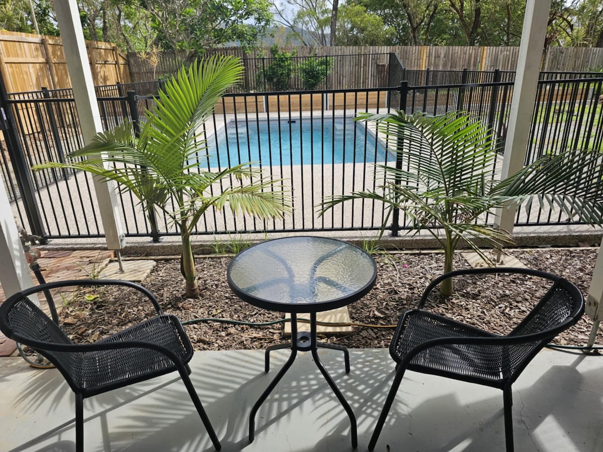 Cute Beach Cottage is situated in beautiful Tropical Gardens a little Oasis just waiting for you to relax, family friendly with a pool to enjoy those hot days, Netflix, Unlimited Internet. Fenced so your children or fur babies are safe to roam, only a short stroll to the waterfront (3mins), dog parks/beach on and off lead beautiful walking/running/bike riding track that will take you around the water's edge, past marina's and into the heart of Airlie. Located off the main road