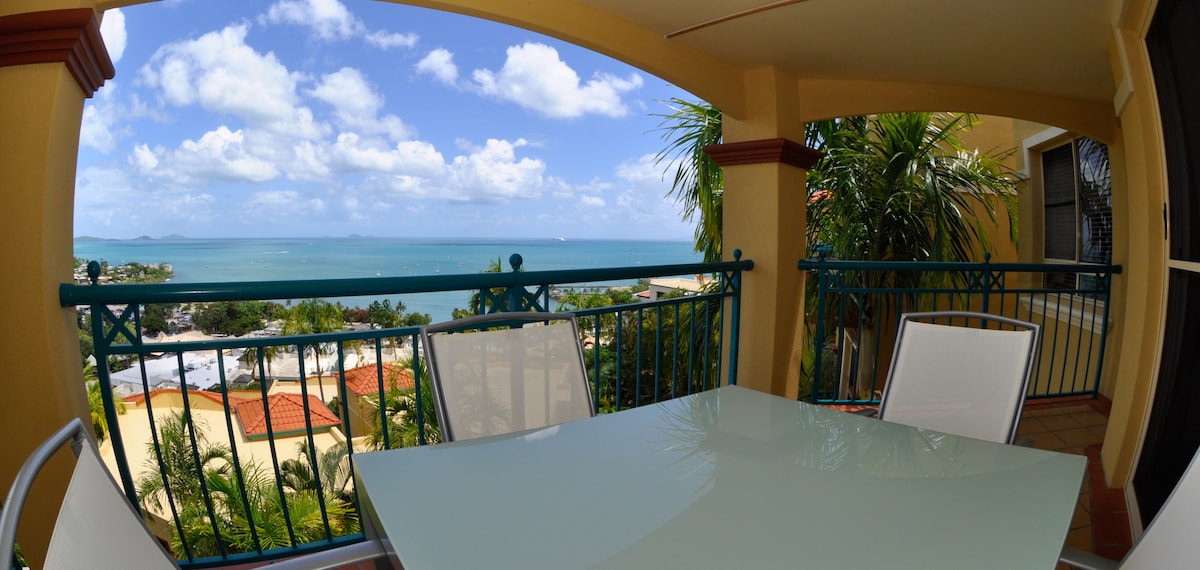 Stunning views of the Coral Sea from this refurbished 1BR apartment in Airlie Beach. 6 Floors up, yet a level walk to town. Enjoy a bedroom with a king-size bed (or twin singles), and a renovated bathroom. Our balcony offers views of the Port Of Airlie Marina & Coral Sea. Onsite Thai dining. No steep hills. Just a 5-min walk to Port of Airlie Marina and a 10-15 min walk to Main St, with Bus stop directly in front of the building. Book now for easy access to tours, restaurants, and nightlife