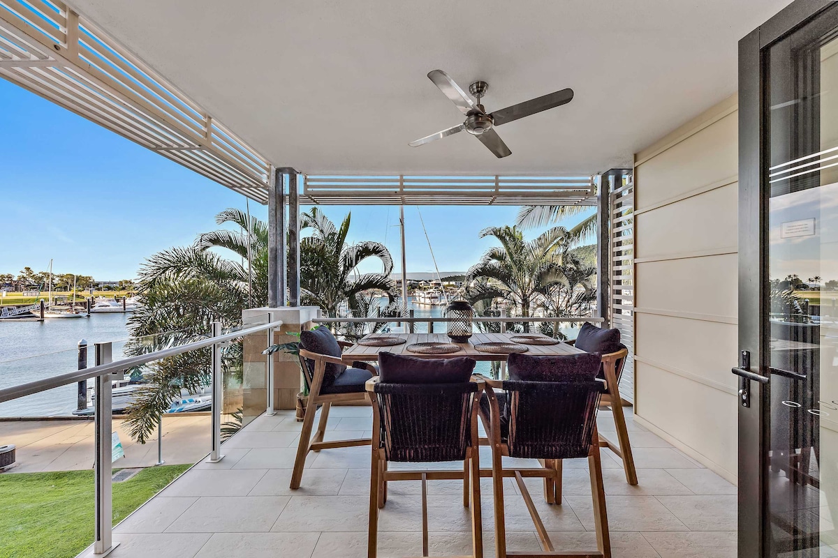 Peaceful yet centrally located, you’re always welcome at the Boathouse, Airlie Beach Marina - a beautiful, luxurious first floor poolside apartment, with top rated restaurants, cafes, shops and pilates /yoga all marina front below. Just metres flat walk to all of Airlies amazing restaurants, cafes, bars and shopping as well as her beaches, playgrounds and pools. Port of Airlie tours and transfers to the Whitsunday Islands and Great Barrier Reef right next door. Absolutely everything you love!