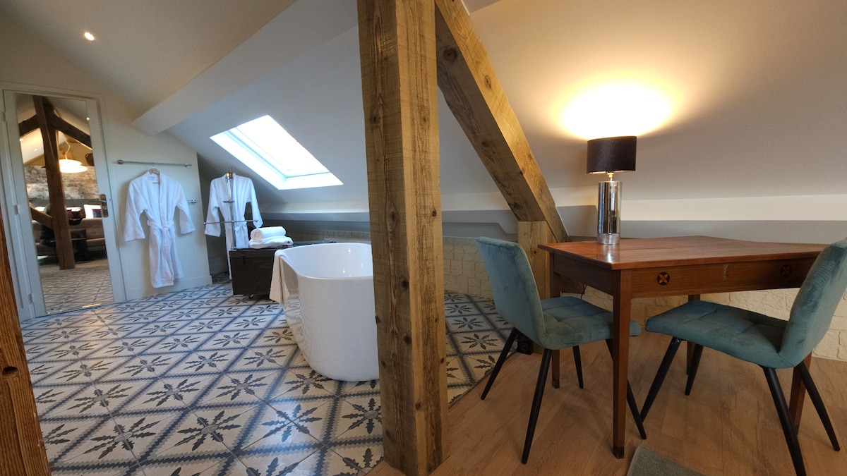 The Vigne et Forêt room, one of our 4 completely renovated Terres Jaunes guest rooms, invites you to discover the vines crowned with woods overlooking the village. Our house, in which we live all year round, is located on the Champagne tourist route in a charming village and has, for breakfast (included and served by your hosts), a terrace in the garden and a dining room.