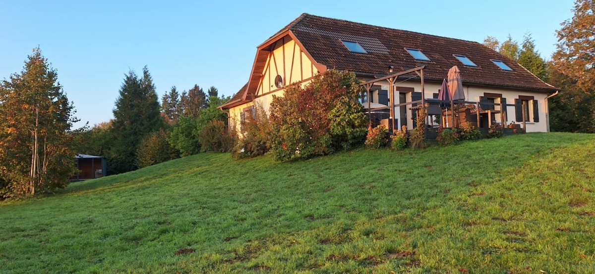 Bienvenue dans notre gîte de charme, labellisé 4 épis par Gîtes de France . Profitez d’un confort optimal avec un sauna, un bain nordique et des espaces de jeux, le tout avec une magnifique vue sur la campagne. Vous découvrirez un grand espace extérieur, idéal pour les retrouvailles familiales et les moments entre amis. Situé au cœur d’un village avec toutes les commodités, vous serez plongé en pleine nature, pour un séjour à la fois convivial et ressourçant.