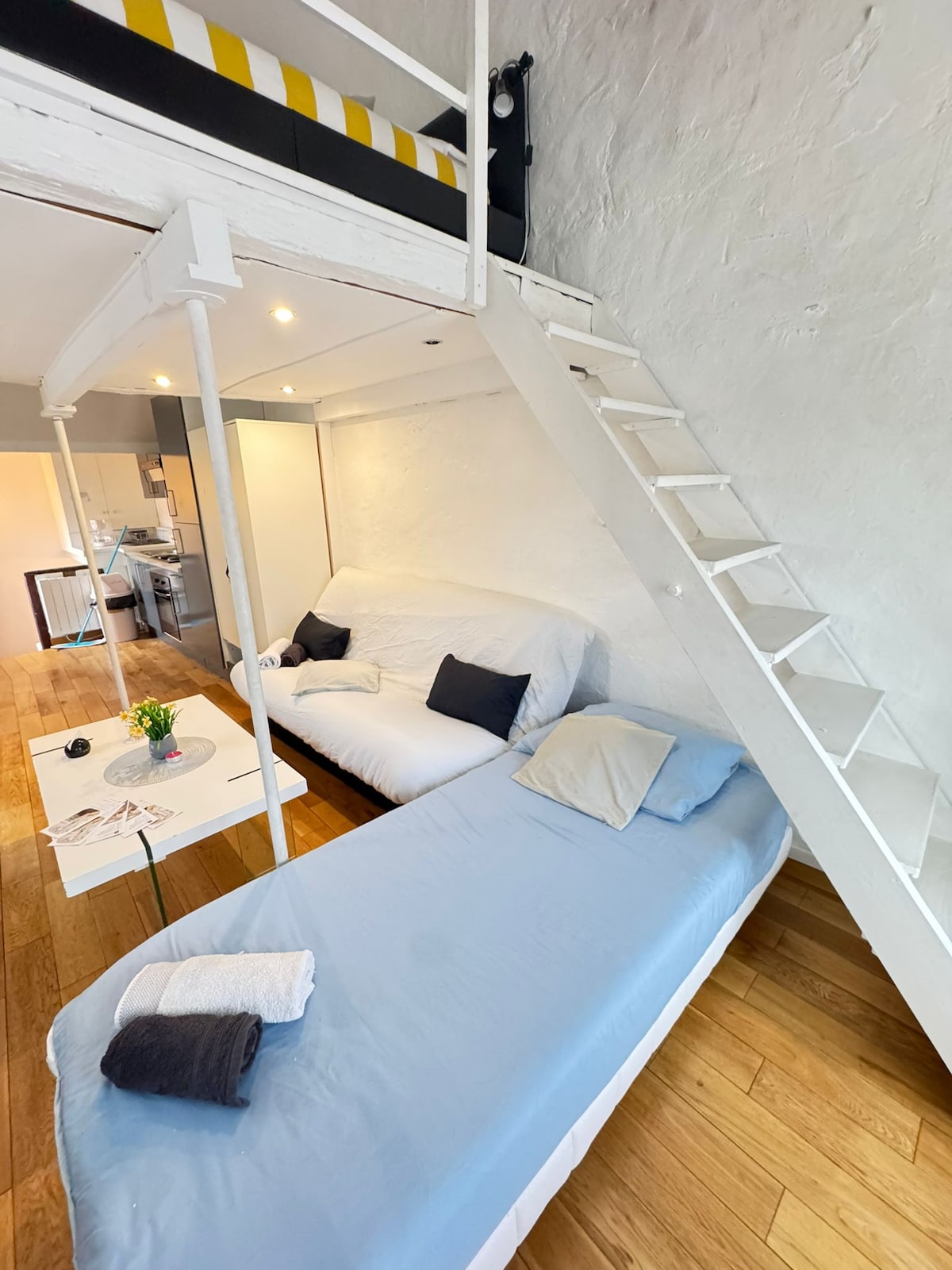 Studio duplex 32m² – La Ferté-sous-Jouarre ✨✨✨ Grand studio duplex au 3ᵉ étage, avec cuisine équipée, salon cosy et mezzanine avec couchage supplémentaire. ✨✨✨ Gare à 4 min à pied (Paris 40 min, Disneyland 30 min), commerces et restaurants proches. ✨✨✨ Les bords de Marne sont à deux pas pour de belles balades. Harmonie et praticité pour un séjour en toute sérénité.