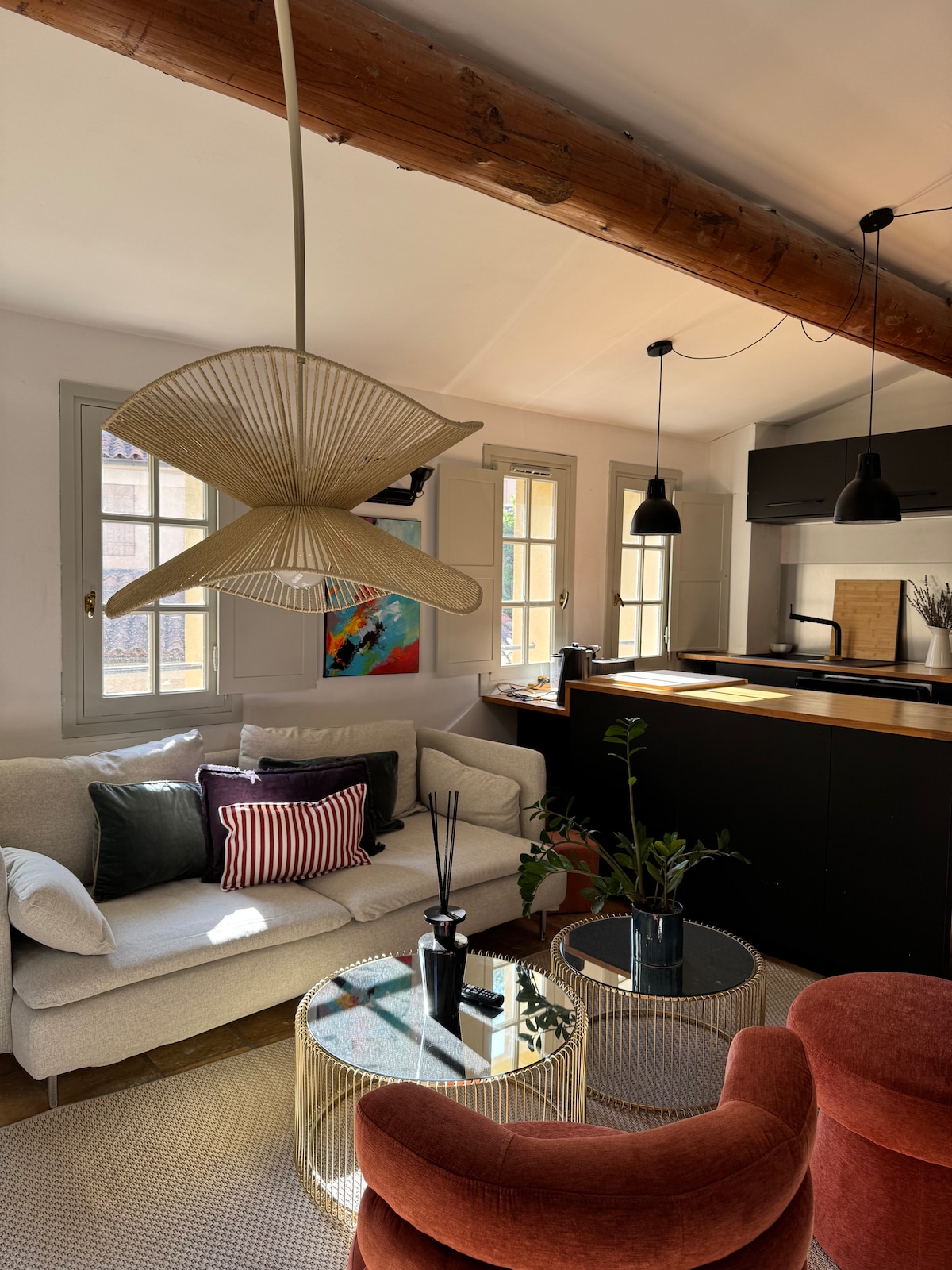 Loft de caractère situé dans une cours intérieure sur la Place de la Mairie, au coeur du centre historique. Proche des terrasses, des marchés et des nombreux commerces alentours. Il marie le charme de l’ancien avec ses belles hauteurs sous plafond, ses moulures et son sol de tomettes rouges à une décoration contemporaine et dispose de toutes les commodités. Localisation idéale pour découvrir à pied le cours Mirabeau, Le Pavillon Vendômes, les Thermes Sexius et les ruelles typiques de la ville.