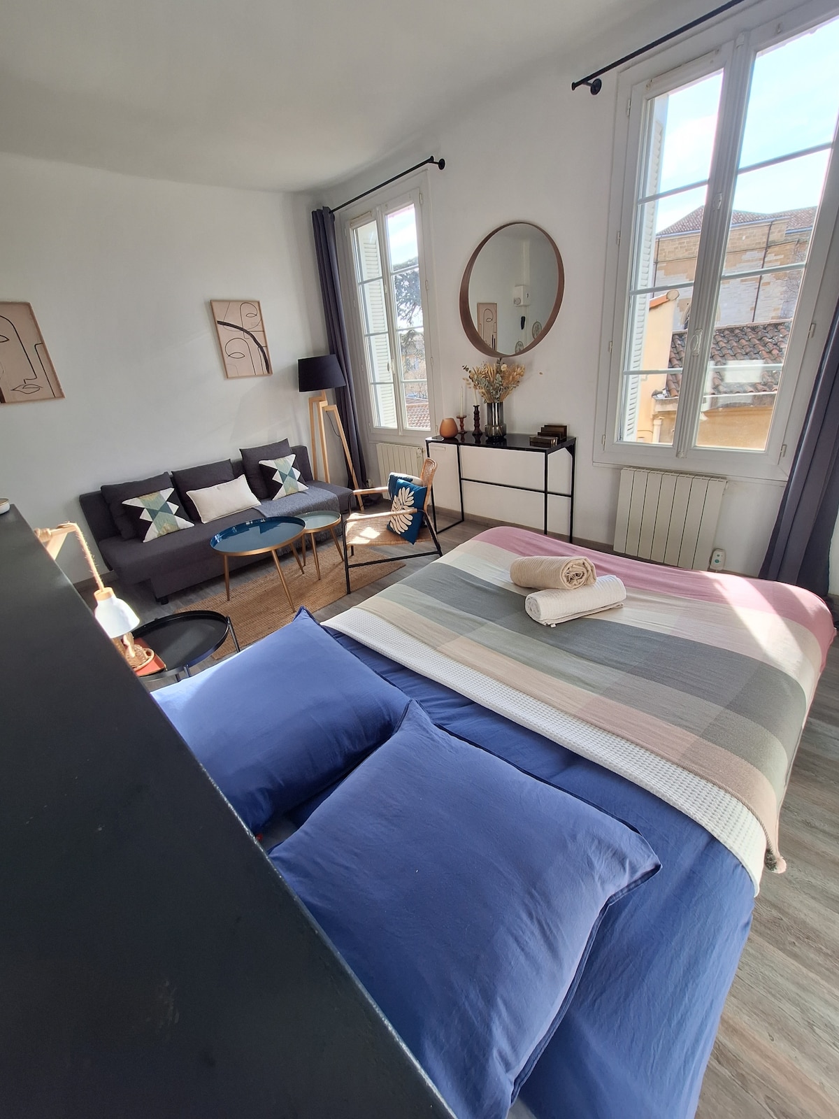 Unique et exceptionnel, studio cosy situé Place des Cardeurs. Donnant sur une cour intérieure au calme, avec un jardin privatif, vous êtes en plein centre d'Aix en Provence et en même temps au calme, les chants des oiseaux accompagneront vos petits déjeuners et vos repas ou une sieste bien méritée après une journée de visite. La climatisation vous permettra d'être toujours dans une ambiance agréable, ce magnifique studio refait entièrement à neuf , vous accueillera dans son atmosphère calme.