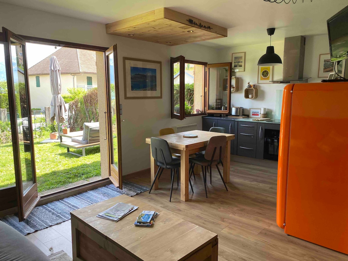 Détendez-vous dans ce logement calme et élégant. St Jorioz, 1,5 km des plages, 800 m des commerces, vous logerez dans ce studio neuf, indépendant dans maison individuelle, au calme avec petite vue lac. Superbe région entre randonnées, plages, sports nautiques, balades à vélo, golf , visite Annecy, châteaux , tour du lac en bateau, montgolfière, parapente. Je serai une présence discrète pendant votre séjour pour répondre au mieux à vos besoins et attentes