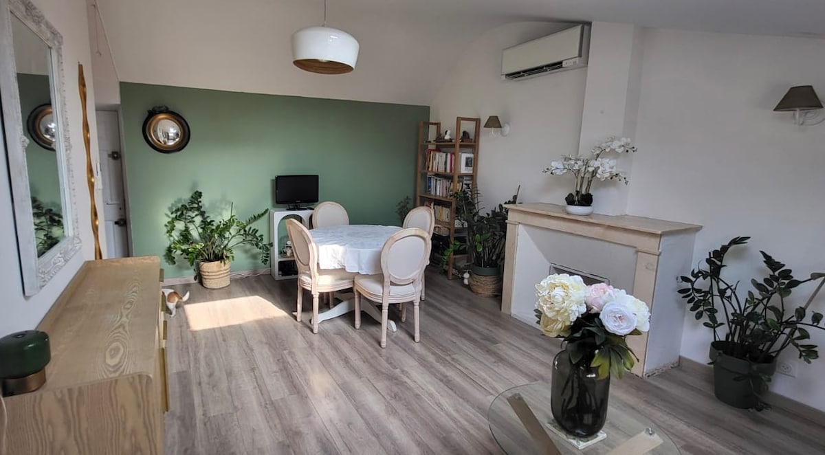 Un appartement de 60m2 esprit loft, en partait état, plein centre d'Ajaccio, à proximité immédiate du Cours Napoléon, de la gare et des bus des plages des Sanguinaires. Quartier très agréable avec boulangerie, pâtisserie ,coiffeur pharmacie, cafés ombragés, restaurants, commerces. Le logement est climatisé, WIFi, cuisine entièrement équipée (lave linge-lave vaisselle ),une grande pièce à vivre ( télévision. Netflix) avec un balcon idéal pour le petit déjeuner, petite vue mer, chambre.