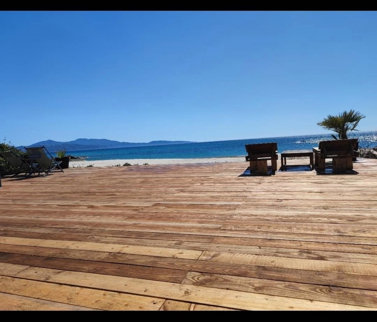 Plage de Furnellu..cet ancien cabanon de pécheur rénovée dans le respect de l'environnement, est nichée dans une des plus belles crique de Corse , l'endroit unique de part son écrin sauvage et l'accès privé direct à la plage en font un lieu d'exception. Ses terrasses en bois sont idéales pour le repos, le rêve et la vie en extérieur. La maison bénéficie de 2 chambres doubles , d'une cuisine, d'une petite salle d'eau. Idéal pour vivre des vacances de rêves dans un coin de paradis à l’état sauvage