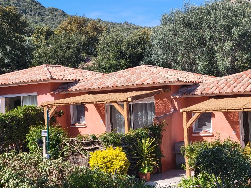 Minivilla 2-4 pers. Détente dans petit hameau typique, au calme entre mer et montagne, 6 km de Porto Vecchio et ses plages. Villa mitoyenne neuve de 45m2. 2-4 personnes. ( 1 chambre + 1 vrai canapé-lit). jardin privatif pour repas en extérieur ou sieste à l ombre. Départ idéal pour découvrir la Corse du Sud. L équipement neuf tout confort vous feront sentir comme à la maison! Linge compris,Climatisation, wifi, LL, LV, mobilier extérieur, Parking… Autres Prestations possibles sur demande