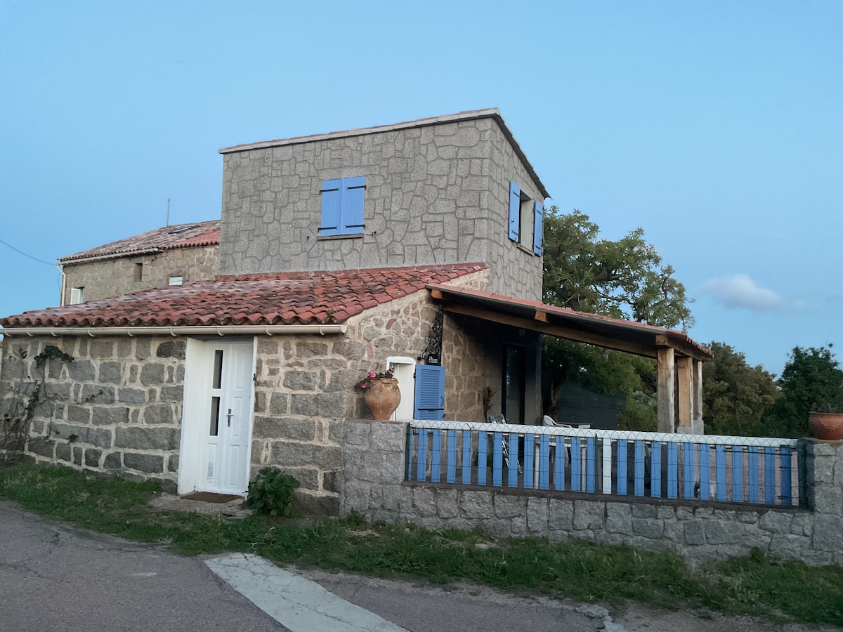 Ruhige Lage in einem großen, angelegten Garten umringt von Olivenbäumen und Steineichen mit herrlichem Meerblick bis nach Campomoro, wo der größte der Genueser Türme steht, der auf lohnenswerter Wanderung mit Badegelegenheit auch bestiegen werden kann) . Im Garten gedeihen Pflanzen mit Verletzungspotential (Agaven, Kakteen, Bougainvillen). Die Wege sind teilweise nicht befestigt. Eltern haften für ihre Kinder! Nach Mitteilung der ungefähren Ankunftszeit übergibt Ana im Haus die Schlüssel