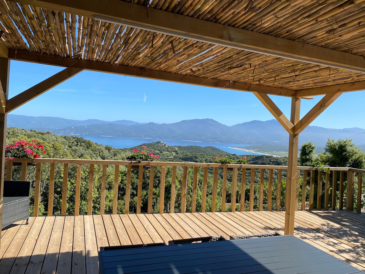 Dans un superbe cadre à Villanova à 12 kms en voiture d’Ajaccio, et à 5 kms de la mer, nous vous proposons cette pépite au cœur de la nature. Nichée tout contre un olivier digne de respect et située en contre bas de notre propriété, cette superbe Tiny neuve et équipée vous charmera avec son côté chic et raffiné, le tout dans une ambiance des plus romantique! Une magnifique terrasse aménagée permettra détente & sérénité avec notre cocobain. Vous adorerez cette escapade unique et romantique.