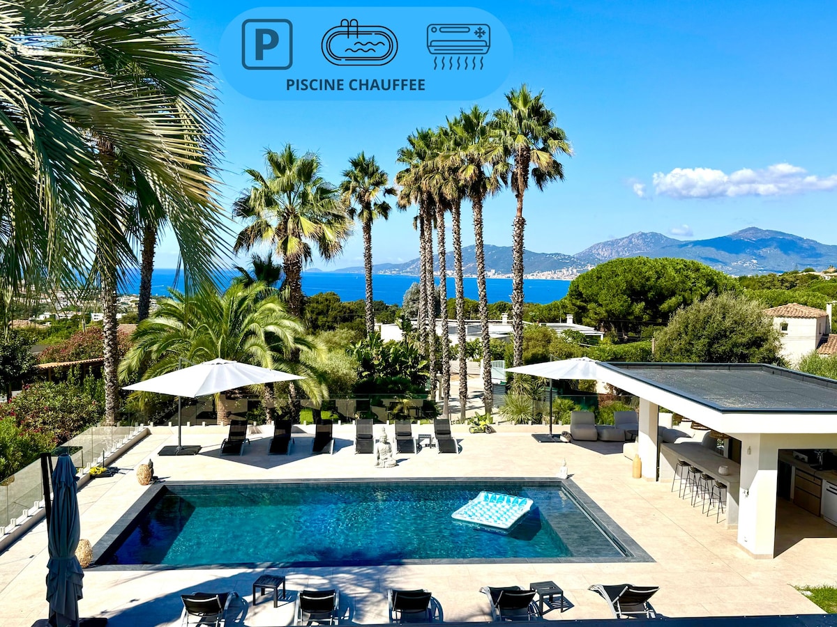 Villa entièrement rénovée en 2022. A 300m de la plage et à 4mn des commerces. L'élégance de la villa, les literies, la climatisation vous offriront un confort hôtelier et seront le gage d'un excellent séjour. Les splendides couchers de soleil sur le Golfe d'Ajaccio accompagneront vos débuts de soirée en famille ou entre amis. Toutes les pièces bénéficient d'une vue mer avec accès direct sur la terrasse et sa piscine chauffée, chaque chambre dispose de sa salle de bain et wc privatif.
