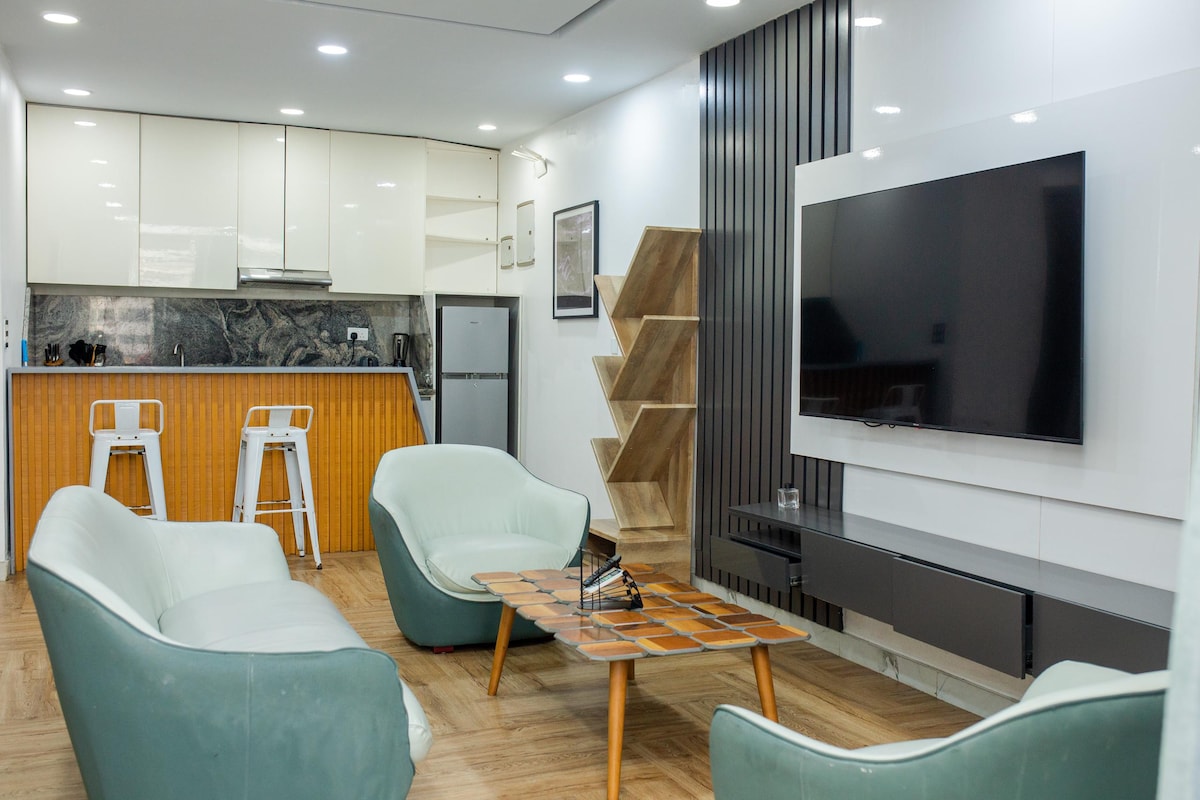 Experience comfort and style in this modern 2-bedroom apartment in Ikate-Lekki. Play on the PS5, stream on smart TVs with Netflix and Prime Video, and enjoy fast WiFi and ACs in every room. The space features a fully equipped kitchen, balcony, workspace, 24/7 power with inverter, swimming pool, gym, and secure gated estate with parking. Just minutes from the best restaurants, nightlife spots, and business centres. Perfect for a getaway, house parties, staycation, or work visit.