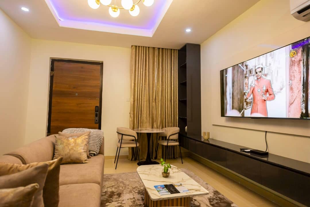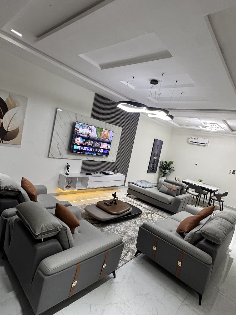 Escape to comfort in this stylish 4-bedrooms, 4.5-bath apartment in Oniru Estate, Victoria Island, Lagos. Enjoy a spacious living room with soft sofa, AC, Wi-Fi, Smart TV with Netflix, and a cozy dining area. The fully equipped kitchen has everything for home-cooked meals. Each ensuite bedroom offers comfort and privacy. Perfect for families, business travelers, or groups seeking luxury, convenience, and 24/7 security in one of Lagos’s most sought-after neighborhoods.