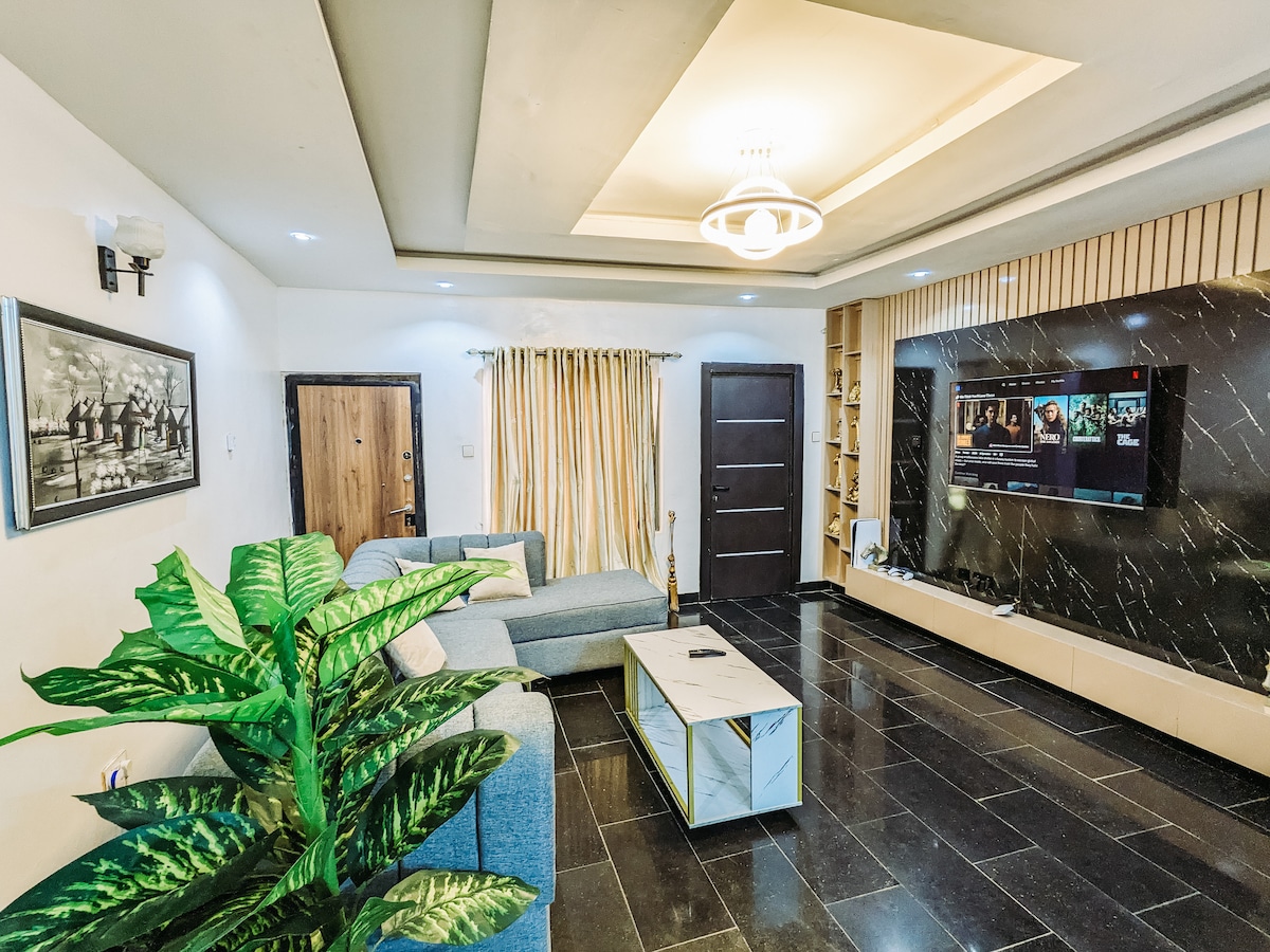 You're welcome to our apartment, located in a gated estate with restricted access to the general public. We offer 24rs electricity and air conditioning of your apartment. It is a tasty, Homely & Family-themed 2-Bedroom Apartment with a Balcony. It's the perfect place for a family vacation & weekend getaway, bridal showers, marriage proposal etc. We have the following: 24hrs Electricity 24hrs Air Conditioning 24hrs hot water Clean Water Starlink Wi-Fi Errand services