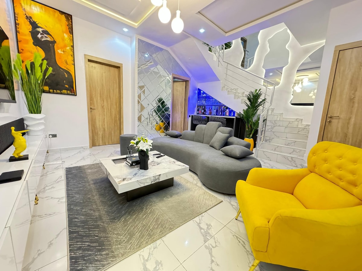 The whole group will enjoy easy access to everything from this centrally located place. Luxury home available for short let, 2 bedroom with Internet and 27/7 pwer supply with solar system. Home away from home experience. GYM, swimming pool, game house, electric car charger system, and two car packs space.