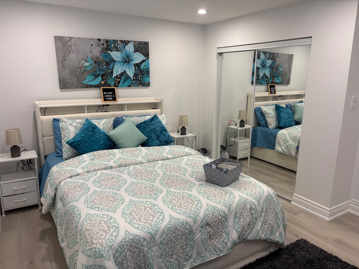 Escape to your own private, brand-new 1-bedroom guest suite in a quiet Ajax neighbourhood. This stunning walk-out apartment is exceptionally bright and features its own dedicated entrance, ensuring 100% privacy for your stay. Inside, you'll find a sleek, modern space designed for comfort and convenience. Relax in the cozy bedroom and space, prepare a full meal in the brand-new kitchen, or sit or sleep in a convertible sofa bad. Perfect for couples, solo adventurers, or business travelers.