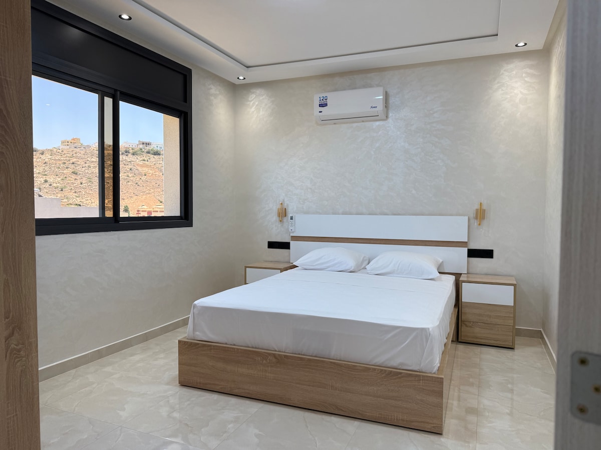 Bienvenue dans ce magnifique appartement neuf situé à seulement 3 km du centre-ville d’Al Hoceïma, dans une résidence privée hautement sécurisée avec surveillance 24h/24, 7j/7. Profitez d’un séjour relaxant dans un espace moderne, élégant et entièrement équipé. Vous serez émerveillés par la vue directe sur la mer et les montagnes du Rif, une atmosphère apaisante, idéale pour les couples, les familles ou les voyageurs en quête de tranquillité.