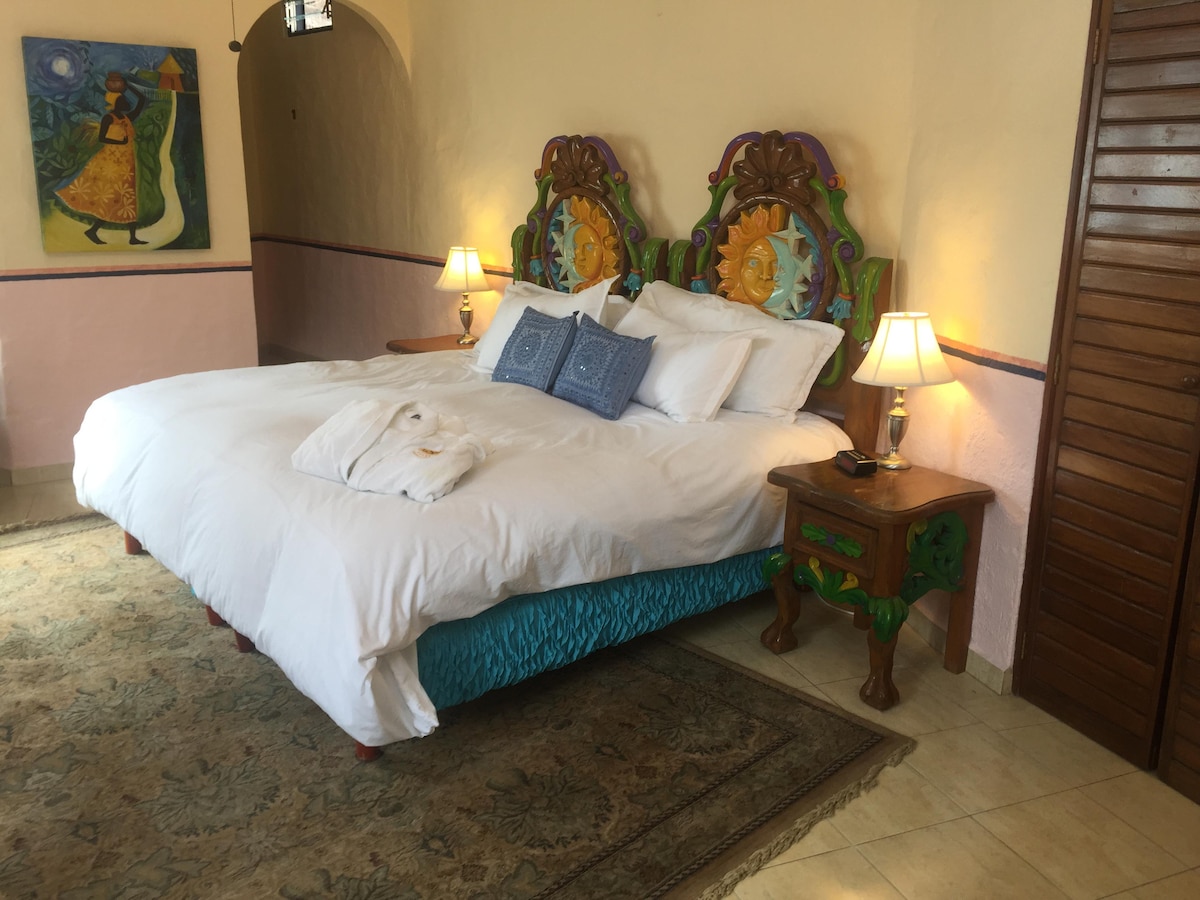 You’ll have use of our palapa and heated pool, and we have great restaurants nearby. Villa Nova is a lovely neighborhood west of the village. Our friendly dogs, Chaquita and Rosie, will want a hello, but you can close the gated garden area for privacy. You will have a refrigerator, hot plate, coffee pot, microwave, dishes, and grill. No children under 12, please, because of the pool. The suite is perfect for 1 to 4 people, not any more than 4.