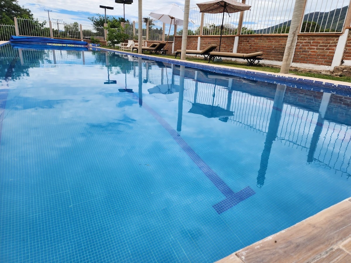 Villa hermosa en el municipio de Ixtlahuacán. Áreas verdes y piscina para disfrutar con la familia y/o amigos. La villa se encuentra en un lugar muy tranquilo en el cual vas a poder tener tranquilidad y diversión al mismo tiempo. A solo dos cuadras del centro del pueblo. Una "escapada" de la realidad. Contamos con enormes áreas verdes y una terraza, además de una zona de juegos para niños.