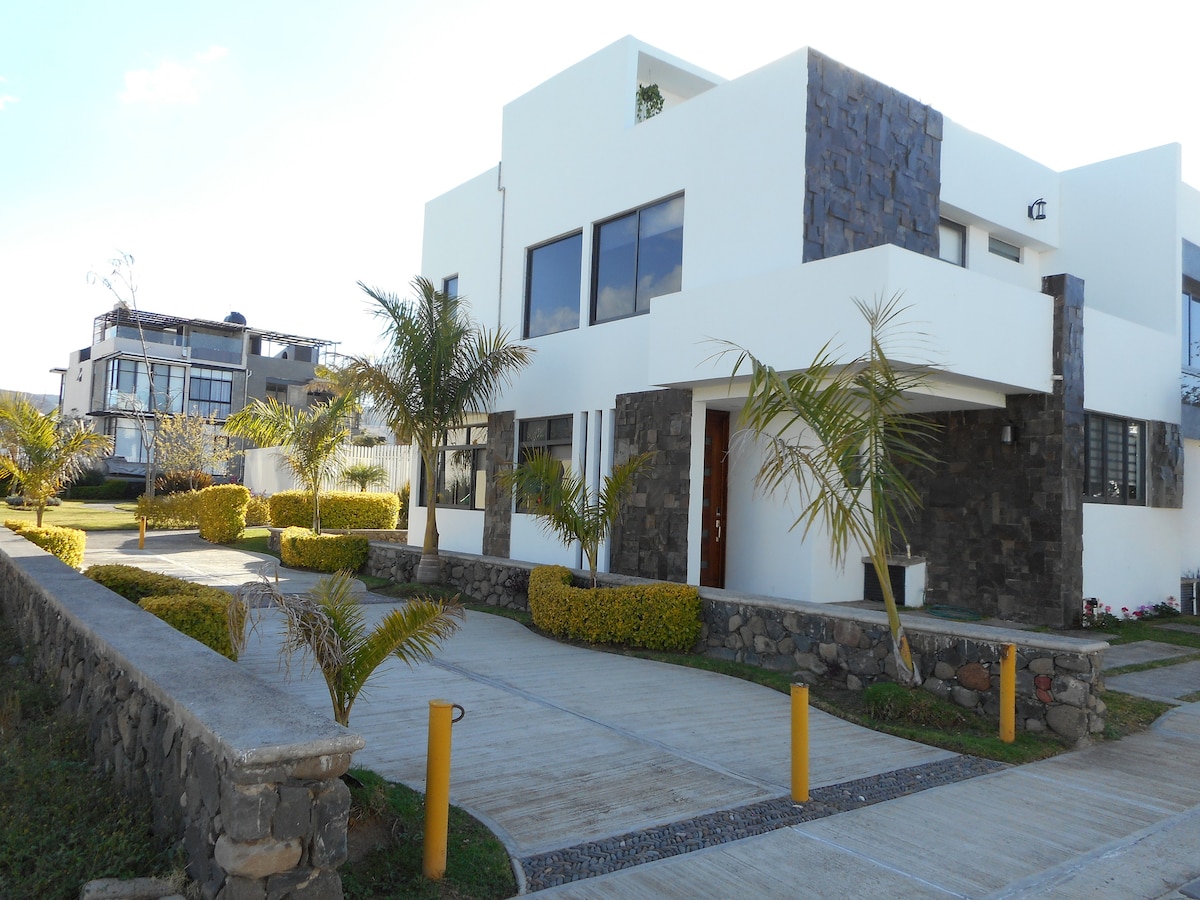 Villa de lujo con piscina privada y climatizada, es una RESIDENCIA muy acogedora enclavada en la montaña con una vista espectacular al Lago de Chapala, ideal para familias, amigos, compañeros disfruta la tranquilidad y el confort de una residencia que está cerca de todo en una zona privilegiada, en un EXCLUSIVO fraccionamiento con caseta de vigilancia las 24 horas, este es tu refugio perfecto, cuenta con una súper cocina equipada y bonita internet para trabajar, estacionamiento y jardines