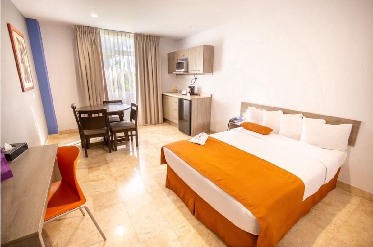Modern, upscale hotel room in the heart of Ajijic, just steps from restaurants, cafés, galleries, and the Malecón. Each thoughtfully designed room features a comfortable double or queen bed, mini-fridge, microwave, and coffee maker. Enjoy a sleek private en-suite bathroom with fresh towels and essentials. Perfect for couples, solo travelers, or business guests seeking a stylish, centrally located stay near Lake Chapala.