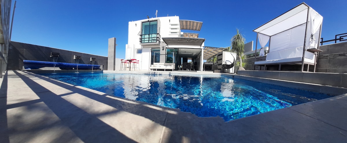 Villa de lujo con piscina privada y climatizada, es una RESIDENCIA muy acogedora enclavada en la montaña con una vista espectacular al Lago de Chapala, ideal para familias, amigos, compañeros disfruta la tranquilidad y el confort de una residencia que está cerca de todo en una zona privilegiada, en un EXCLUSIVO fraccionamiento con caseta de vigilancia las 24 horas, este es tu refugio perfecto, cuenta con una súper cocina equipada y bonita internet para trabajar, estacionamiento y jardines