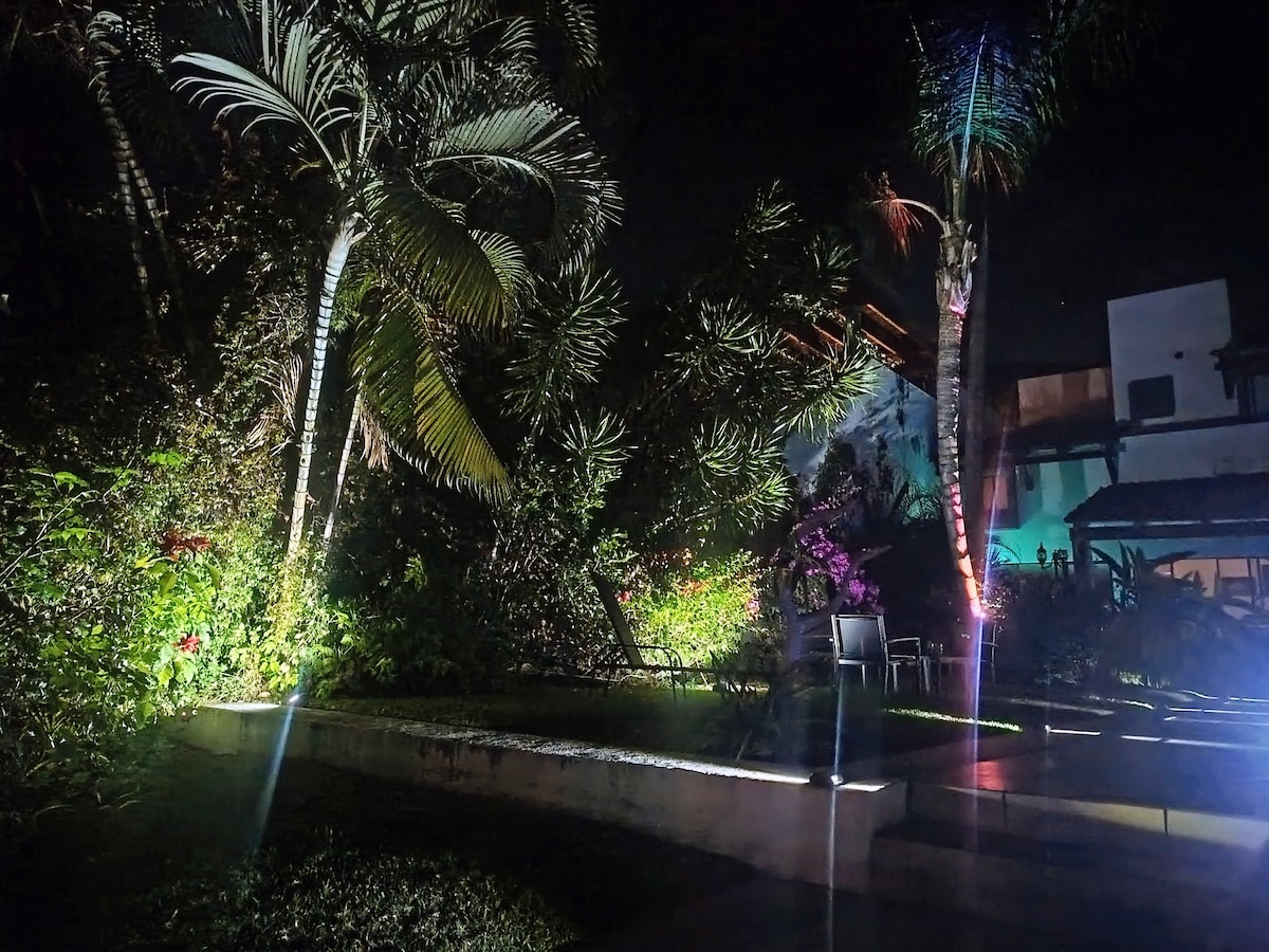 Designer inspired casita with large walk in lagoon style private pool &dramatic lighting, simulated beach, jacuzzi, outdoor BBQ, 3 waterfalls, lush landscaping, private enviornment, Queen canopy bed with sitting area overlooking pool, dining room table for 6, 2 flat screen TVs with free netflix, full kitchen with all amenities including oven, stove, blender, microwave, full size refrigerator, all plates, pots and pans silverware, and towels included. Maid service once a week for extended stays.