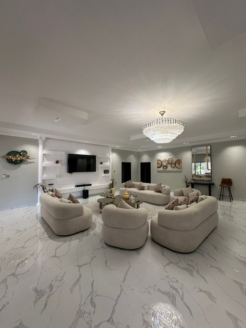 You won’t forget the peacef Al Dhaid Farm A special destination for family gatherings and private events. The farm is fully equipped and offers a beautiful, spacious atmosphere for comfort, relaxation, and enjoyment. 🛏 Bedrooms The farm features 5 spacious bedrooms, each with 4 beds, with additional space for 4 more guests on floor mattresses. Main Hall A very large main hall with 3 comfortable seating areas, a coffee bar, and two marble dining tables that can accommodate up to 20 guests.