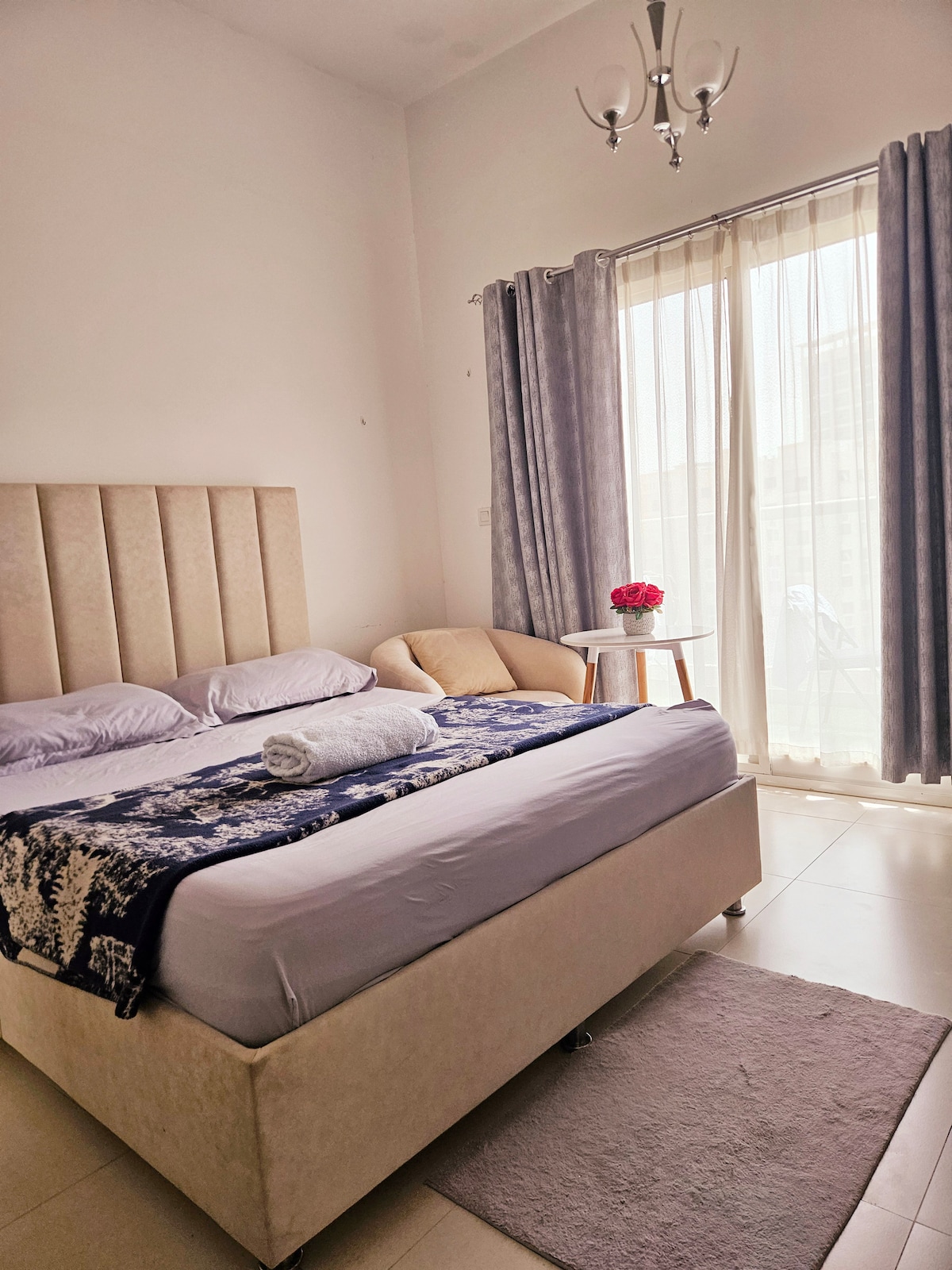 This place is located at the New Heart of Sharjah! Surrounded by all the fun things you would want to experience while you are visiting. From living on top of a mall, surrounded by the busiest, most popular, and fun street in all of sharjah! Having a bounce park a few min away by walking, more restaurants than you can imagine, a free pool, a free gym, a board game cafe, VR gaming, food truck area, cinemas nearby, and much more! Stay with us & we promise you it will be an experience to remember!