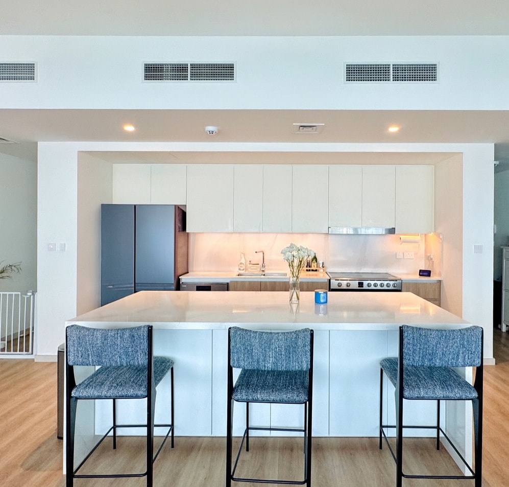 Where Sharjah meets Greece - this unique Santorini-inspired interior design is a true fusion of Mediterranean charm and modern luxury. Nestled in the heart of Sharjah , just a away, you'll find yourself at Zahia City center , as well as 20 minutes by car the mesmerizing Burj Khalifa Fountain Show Large, floor-to-ceiling windows frame breathtaking panoramic views , with a full view of the green garden.