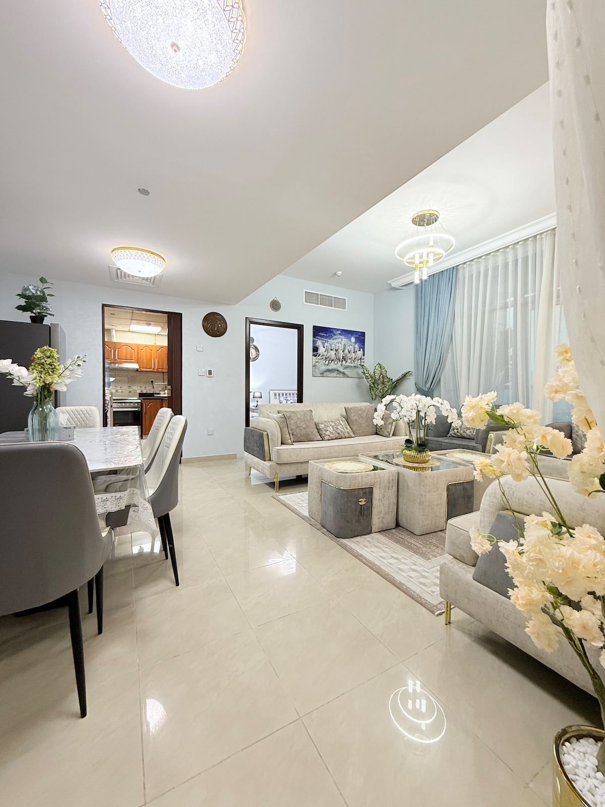 We would like to offer for rent our furnished two-bedroom apartment in the center of Ajman's Corniche. This property is all you could want in an Ajman Residence: a large living room, two king-sized beds and big sofa-bed, a family dining area, a kitchen with plenty of counter space and storage, three full bathrooms, and a 2 balconies with a breathtaking view of the sea. Walking distance to the beach, clubs, eateries, cafes, bars, pharmacy and shopping is only a few minutes.
