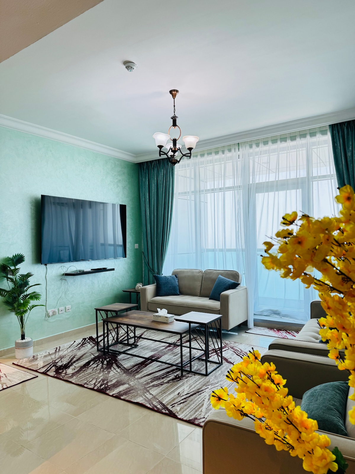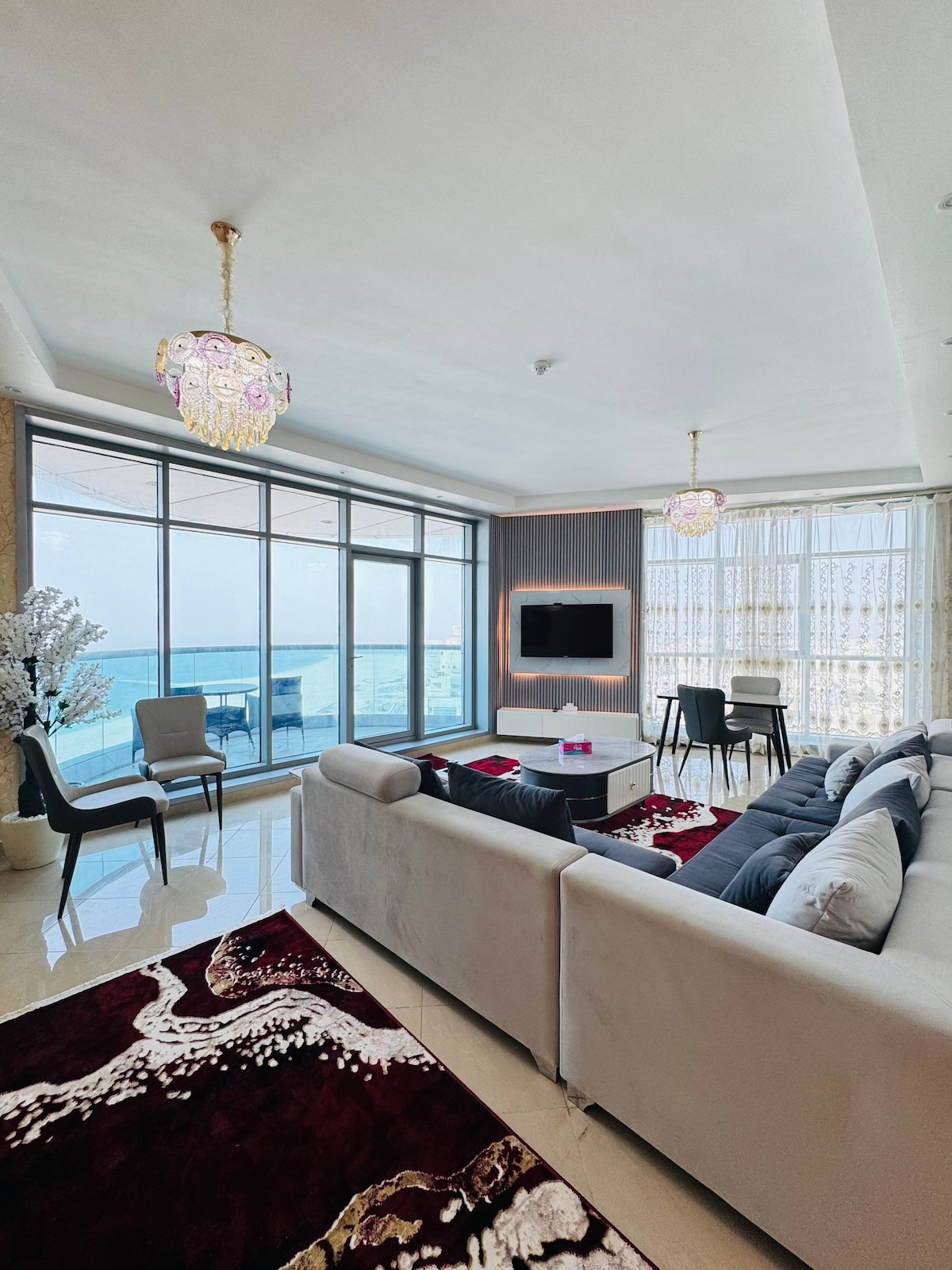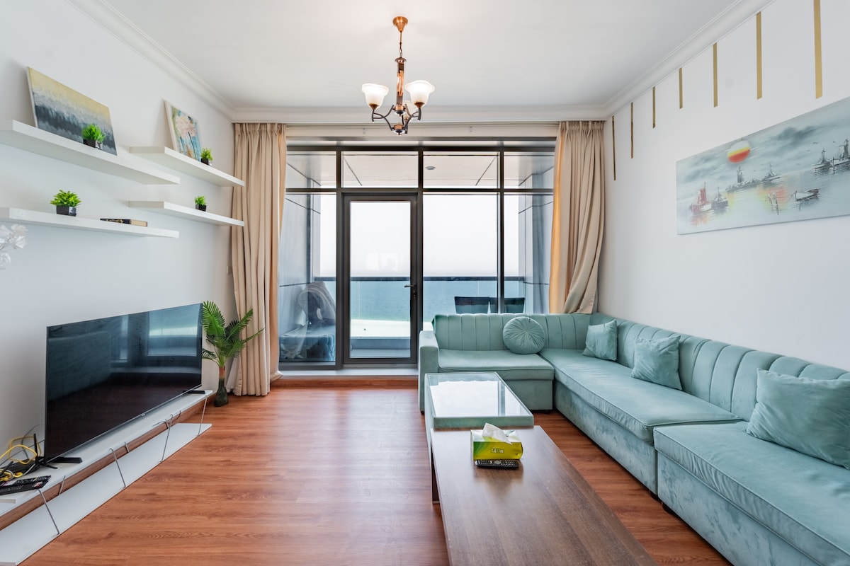 Discover your perfect beachfront getaway in this stylish, boho-inspired 2-bedroom apartment. Designed with natural textures, earthy tones, and artistic details, it offers a warm and inviting space for relaxation. ✔ Panoramic Beach & Sunset Views ✔ Free WiFi + Smart TV ✔ Pool, Gym, Sauna, Jacuzzi & Steam Room ✔ Fully Equipped Kitchen & Free Parking ✔ Steps from Restaurants & Mall ✔ Dining options like KFC, Pizza Hut & Baskin Robbins right in the building