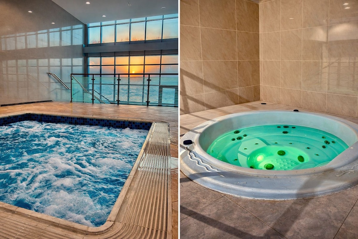 豪华海景公寓——泳池、健身房和按摩浴缸