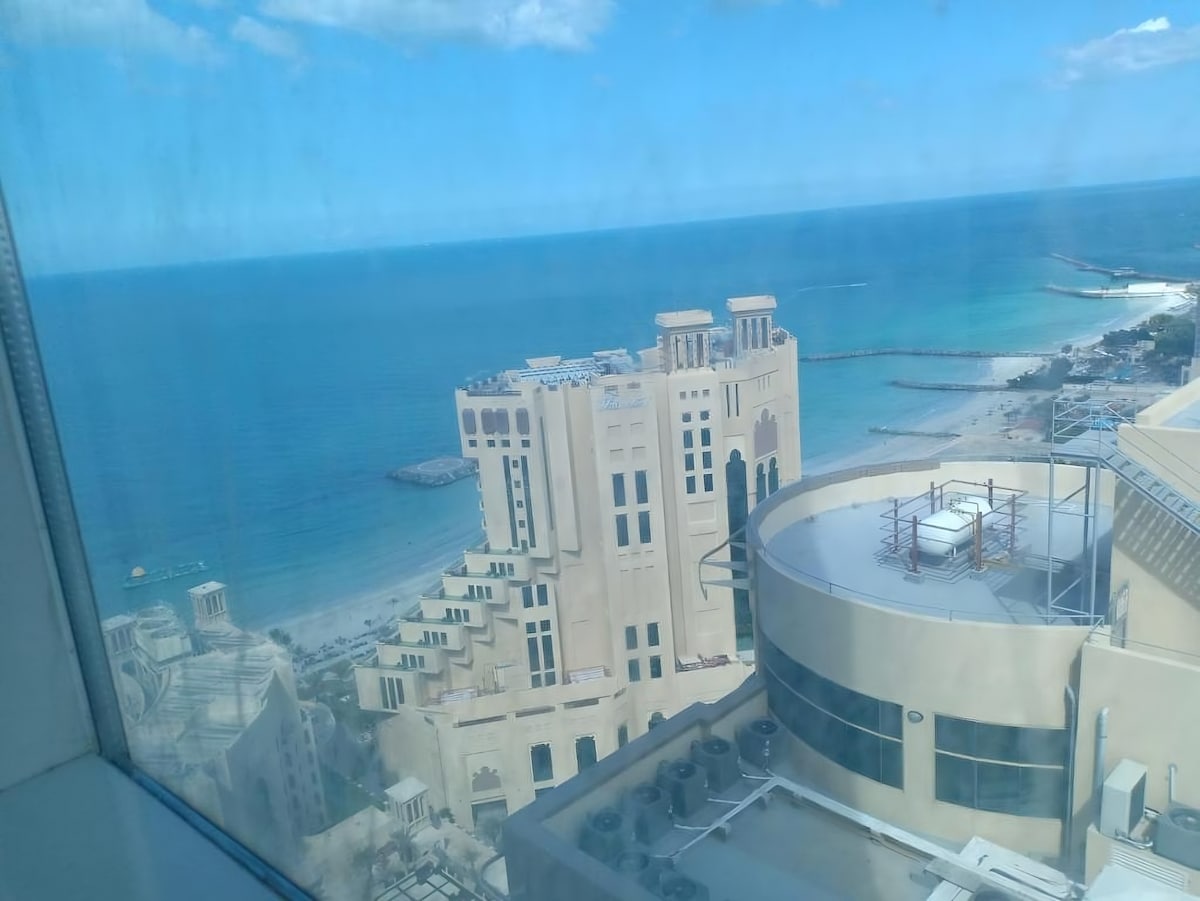 Ocean View Comfort – Enjoy a clean, modern apartment with stunning full ocean views. • Resort-Style Amenities – Access to swimming pool, jacuzzi, gym, sauna, and steam room. • Prime Location – Just 1 minute walking distance to the beach, restaurants, cafés, and supermarkets. • Easy Transport – Only 30 minutes to Dubai International Airport and 20 minutes to Sharjah Airport. • Host Support – Friendly host available to assist with recommendations.