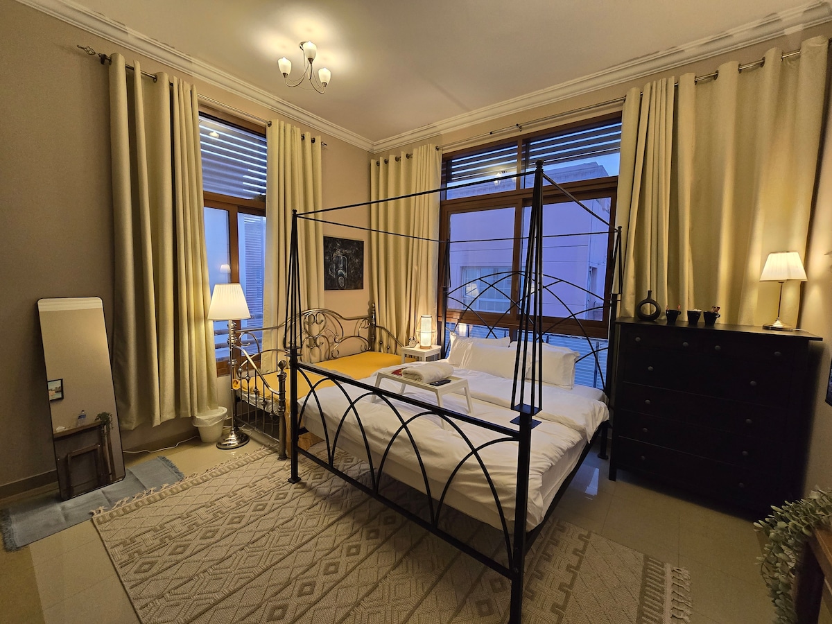 Experience refined living in an elegant 1BR apt, away from the city. Fully furnished with premium appliances for self-catering & laundry. Unwind with a 65” 4K TV, surround sound. Ideal for business & lesiure stays. Quick response, 24/7 maintenance. Note; *Pool unavailable *Roadworks in the area. No noise inside the apartment, easy access. *Weekend stays-complimentary wine. *Card/ Board Games Available. *Cleaning fee. *Lost items: Not responsible *Left items: shipping/logistics at a fee