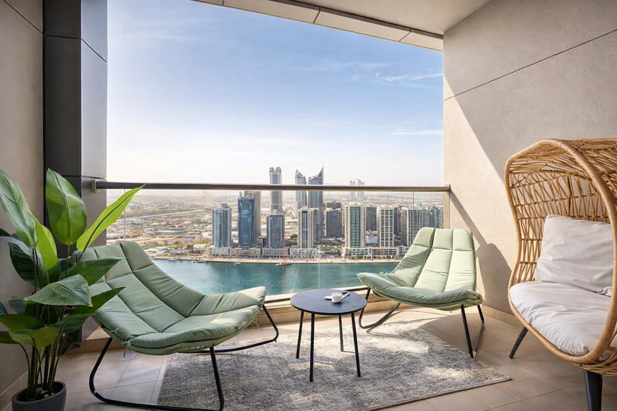 Indulge in luxury at our 2BR apt in the most beautiful place in Dubai ,boasting panoramic views of Burj khalifa Cityscape &creek sea view.Relax and unwind in this peaceful and elegant abode.Take advantage of the top-notch building amenities, including an infinity pool, gym, kids play area , kids pool , multi purpose hall , badminton court and tennis court ☑️10 minutes to Burj Khalifa & Dubai Mall and SHZ ☑️14 minutes to Dubai airports ☑️10 minutes to Wildlife Sanctuary ☑️18 minutes to Palm Jumeirah