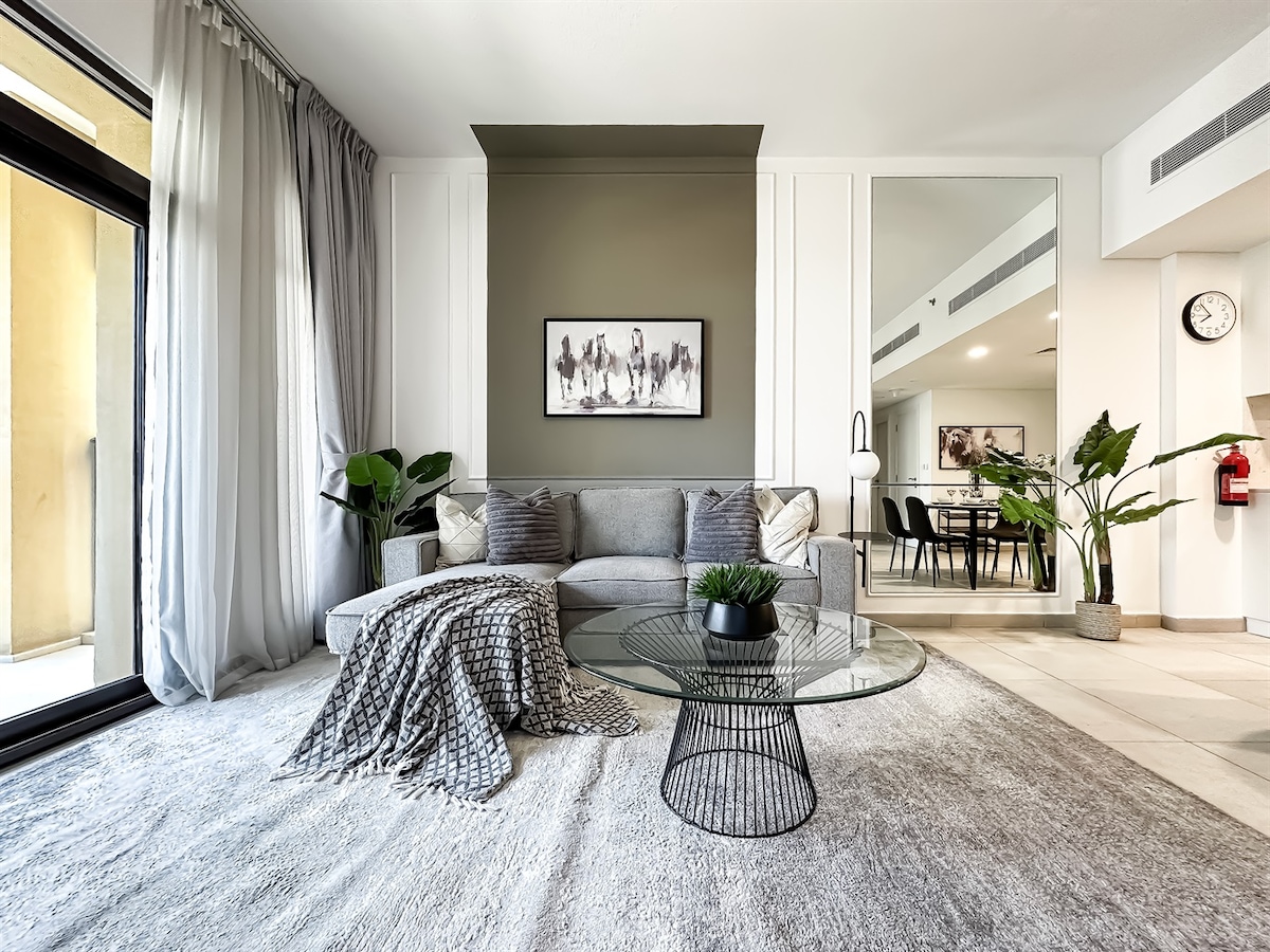 Want a modern glam apartment near the beach? This contemporary 1-bedroom in Port De La Mer is exactly what you’re looking for. A quick walk gets you to the beach, and the area is packed with great places to eat. City Walk, with its shops and cafes, is less than 15 minutes away for when you’re ready to explore. Inside, you’ll find a cozy living room, a fully equipped kitchen, and a balcony with beach views. Plus, the building has a pool, gym, and even a play area for kids.
