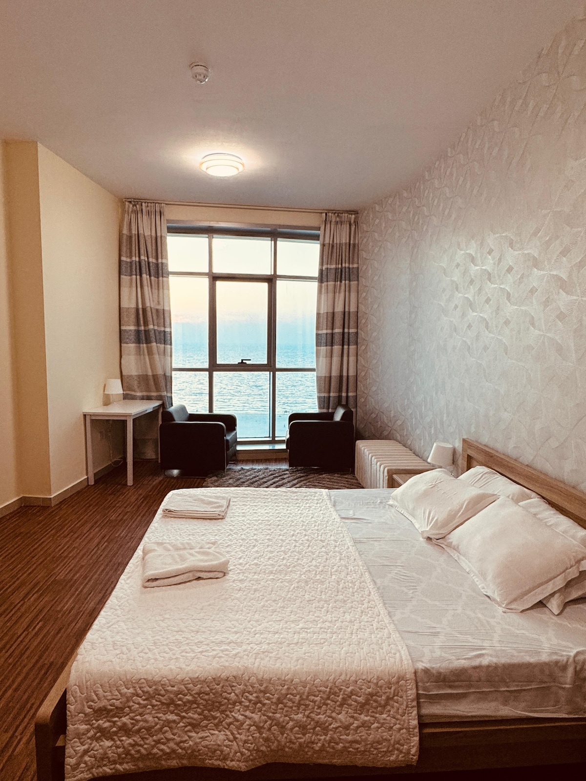 Relax with the whole family at this peaceful place to stay. Apartment with the city view Beautiful apartment just 2 min from the beach . Cozy , comfy , with positive atmosphere. 1 bedroom apartment ( king size bed and single bed), + folding sofa , total up to 5 sleeping spaces . Towels , kitchen stuff , everything is available Check in 24/7 , I always available for you