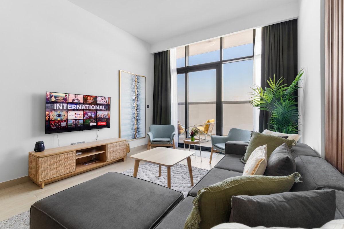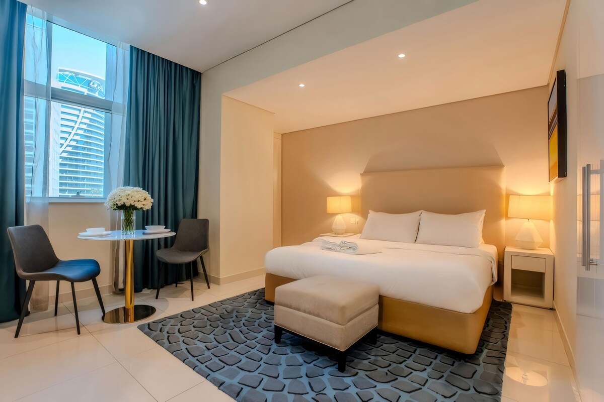 For the sophisticated and discerning traveler, Goodwood Suites offers unrivaled and indulgent luxury. It consists of a superb king-size bed, an impressive living area, a dining area, a Huge Balcony, and a carefully appointed art collection. The suite includes a hi-fi system, digital satellite TV, an 85" flat screen in the living room, and a 55" in the bedroom. Located in Al Muhaisnah Dubai which is 3-4km from Dubai International Airport. Enjoy at this peaceful place to stay.