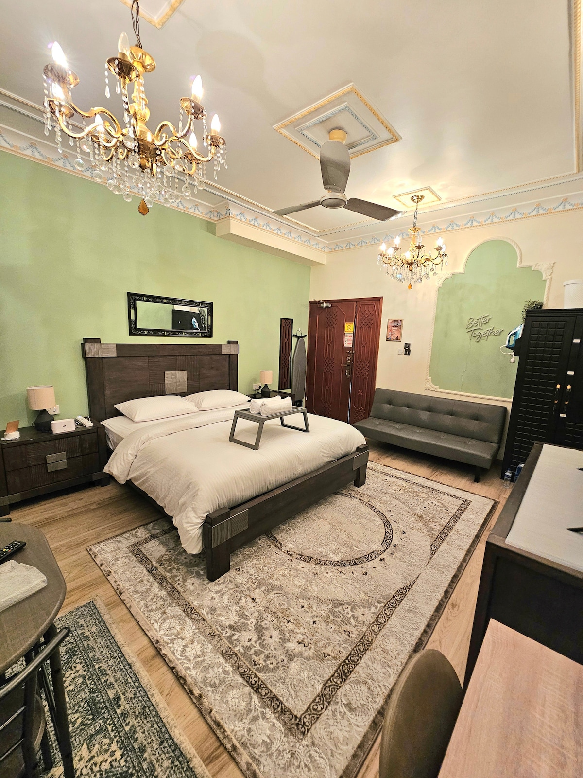 Studio with serene and tranquil atmosphere at prime location 🏞. Staying at this fully private non shared studio room you are only 15 mins walk away from Max Metro Station, 5 mins drive away from Dubai frame and 9 mins drive away from World Trade Centre. Moreover, there are Grocery shops, Barbershops, Mosques, restaurants & Cafes just walking distance away. We offer free onsite parking, in-unit laundry facility, bike rentals and more. Come unwind in this Studio haven 🫶
