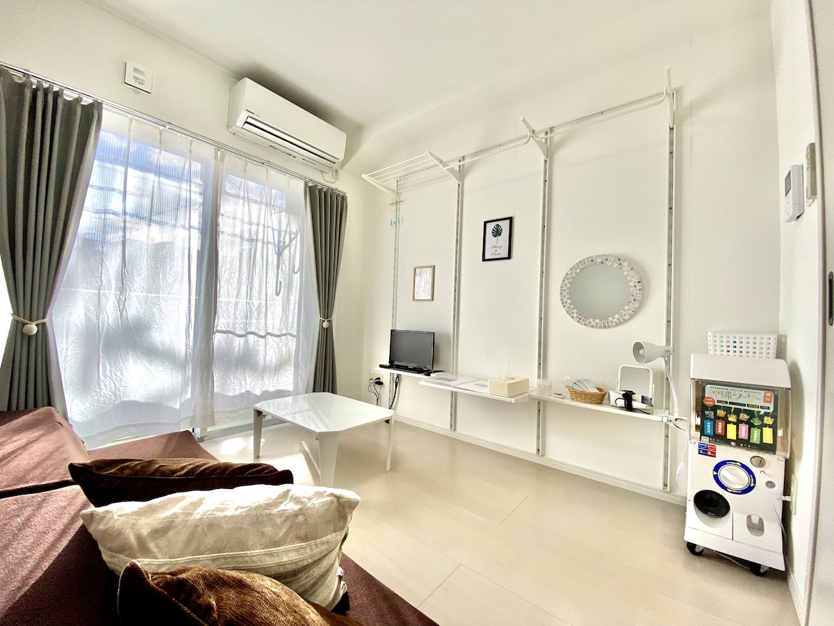当宿は1972年に建てられた古いアパートの1室です。新しいホテルのような最新設備はありませんが、清潔なお部屋と沖縄らしい可愛いインテリアが若い女性に人気の宿です。和室には伝統的な畳が敷いてあります。 ☆場所 賑やかな繁華街の中にあり、那覇の街を満喫できます。 モノレール/バス/タクシーなどの公共交通機関が便利です。 周囲にはコンビニ・デパート・人気の飲食店などがあります。 ☆お部屋 キッチンはありませんが、電子レンジや電子ケトル、食器やカトラリーはあります。 ゲストルームは2階(階段のみ)※オーナーが3階に住んでいます。 広さ26㎡(280sq/ft)、大人1~2名に丁度よい広さです。 寝具やリネンは“無印良品(MUJI)”のオーガニックコットンや麻の天然素材です。 トイレやシャワー設備を2022年に新しくしました。 ☆チェックインとチェックアウトはホストが対面で対応します。チェックイン時間を事前にメールでお知らせください。 ☆当宿は駐車場はありません。レンタカーでお越しの場合は事前にお知らせください。近隣のお勧め有料駐車場をご紹介します。
