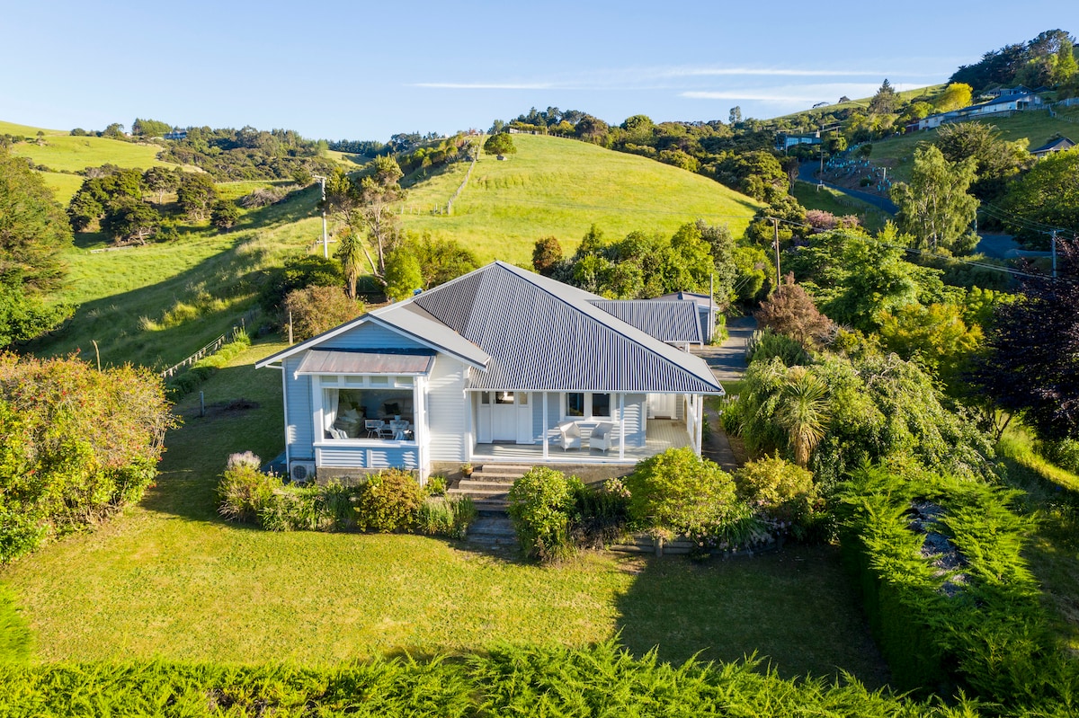 This beautifully renovated villa overlooking Children's Bay and the Akaroa township was the original farmhouse for the land surrounding her. While retaining the character of the villa, the house has been lovingly restored to create thoughtful sunny spaces in a home away from home. 5 minute stroll down the hill and you are in the village of Akaroa where you will find an abundance of fine local restaurants, unique shops and activities. Free Wifi, comfortable beds, 2 person spa, BBQ, Tv Streaming.