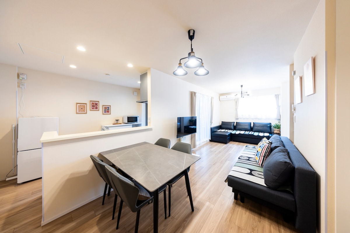 这间位于福冈天神的Airbnb民宿,虽然坐落在市中心,却拥有一份宁静,展现出洗练的现代风格。 该地区兼具城市的便利性与住宅区的安静氛围,是旅游和商务住宿的理想选择。 从民宿步行10分钟即可到达天神站,前往福冈机场、博多、中洲都非常方便! 附近有众多餐馆、咖啡店、便利店和超市,生活机能完善。 整间为41㎡的整层租赁空间。 房间以白色和木纹为主调,风格简洁高雅,配备IH电磁炉厨房、餐桌、滚筒洗衣烘干机等,适合长时间住宿。 卧室配有两张双人床和一套榻榻米床垫。 这里是您在福冈的理想据点,结合实用性与美感,提供舒适惬意的住宿体验。 -方便前往天神、博多(地铁与公交均可) -安静区域的整层出租住宿 -最多可住6人(双人床×2,榻榻米床垫×1) -配备IH厨房、洗衣烘干机等生活设施 -简约现代风格,白色与木纹装饰,舒适宜人