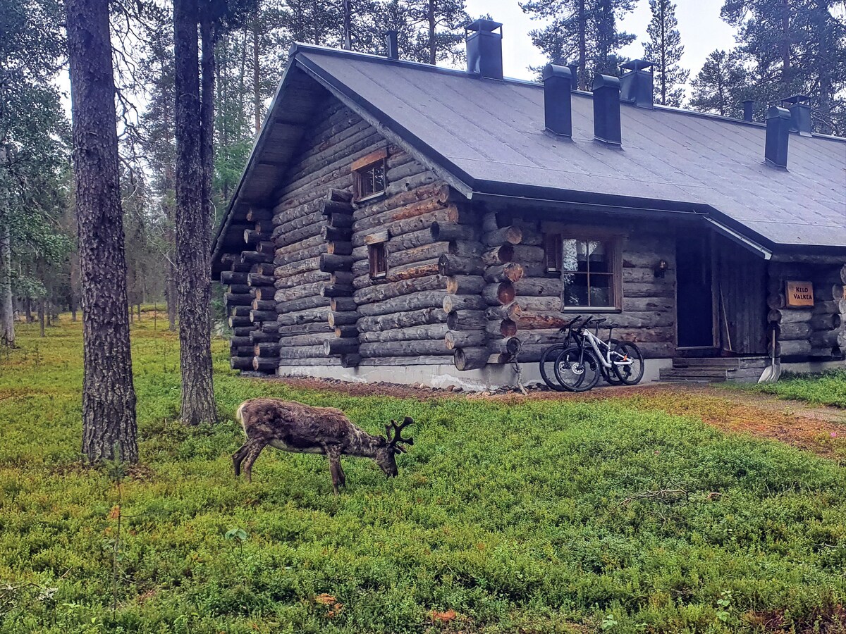 Traditional Finnish semi-detached log cabin in the middle of nature. Enjoy magical winter or beautifull summer at this cozy and peacefull cabin. No light pollution so good for watching northern lights. Beautifull view to the Ylläs fjell which is only 10 min. drive away. 2 bedrooms, a loft, working space, living room, modern kitchen, separate toilet, bathroom and sauna. Free Wifi. The outdoor hot tub can be rented from April-October with self-service 90€/use.