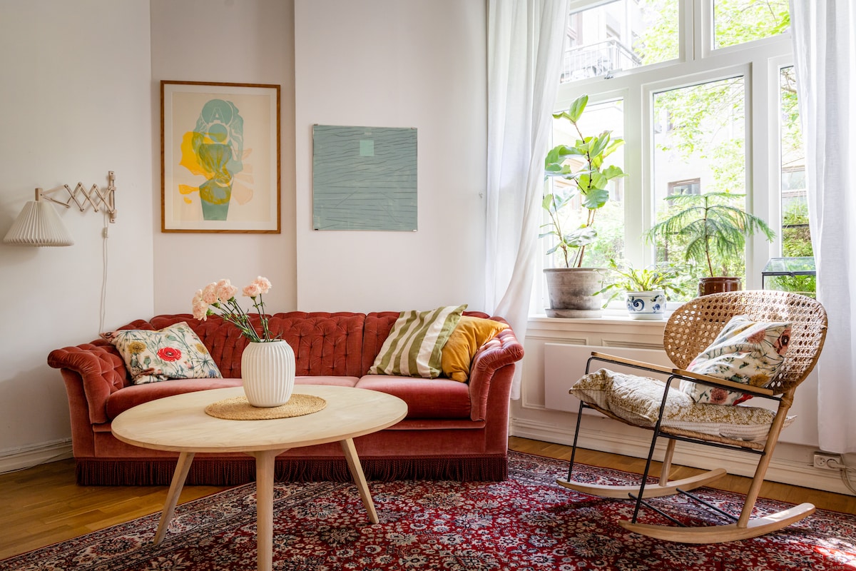 Classic apartment in nordic design. Facing a quiet garden w/flowers and fruittrees. A beautiful vibrant neighbourhood. Spacious livingroom: TV w/chromecast, fireplace, table for dinner & work. Sofa. Kitchen: Dishwasher, washingmachine, supplies for cooking and baking, Moccamaster, french press, coffegrinder, kettle. Bedroom 1: Double bed 160x200 Bedroom 2: 2 beds 90x200 / bunk for adults Small functional bathroom. For your baby: High chair, travel cot, changing pad, stroller.