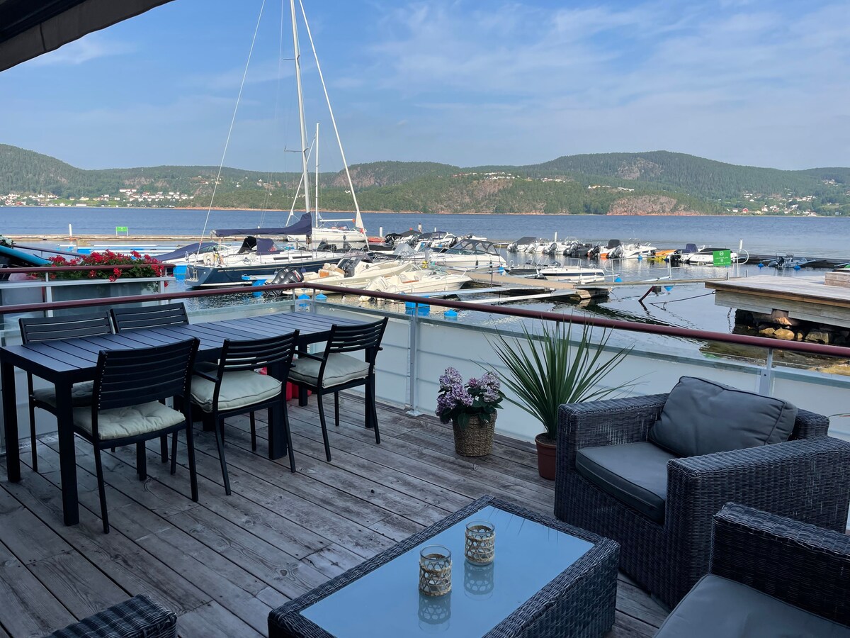 Three houses on a large seafront property. The main house is just renovated and has 5 bedrooms/2 bathrooms. Two smaller houses, each with toilet/bathroom, kitchen and bedrooms. Perfekt for big families or group of colleagues. We do not accept big groups of party-friends. The area is quiet but still very near to Oslo, with just 8 minutes to walk to the ferry who takes you to Oslo in 24 minutes. Parking is available on the property. We have two cats that wills stay in the house during you stay.
