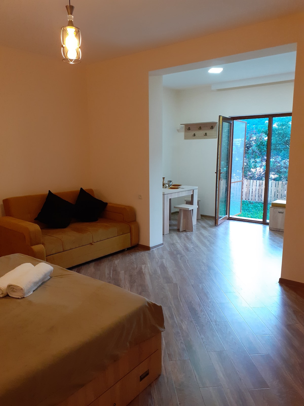 New Refurbished home in Borjomi 5 minutes walking from the city center in a quiet street. One bedroom with comfortable 2 beds (twin or double) fully fitted Kitchen. Home located almost in the city center and its close distance to local mutheum, bustation, Central Park and national park also.