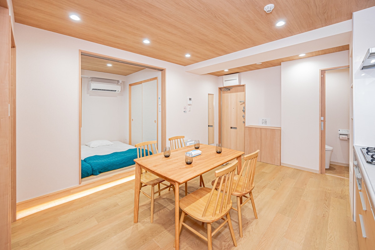 A stylish, modern condo-style hotel opened in May 2025, located in the heart of Akihabara. Just a few minutes’ walk from both Suehirocho and Akihabara stations, with convenience stores and restaurants nearby. Surrounded by figure shops, electronics stores, maid cafés, and real-life Mario Kart rides—plus custom car gatherings on weekends. Still, the street is quiet at night for a restful sleep. - 70㎡ 2 bedrooms (1 x double + 2 x single) - Smart TV - Fully equipped kitchen - In-room washer-dryer
