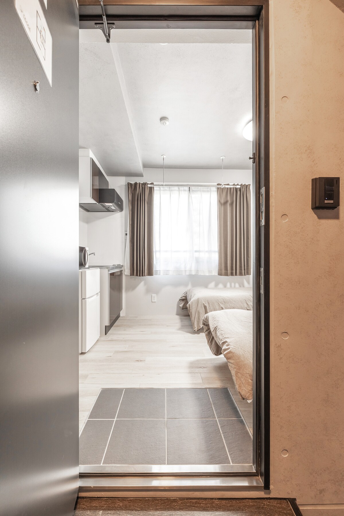 A stylish, modern condo-style hotel opened in May 2025, located in the heart of Akihabara. Just a few minutes’ walk from both Suehirocho and Akihabara stations, with convenience stores and restaurants nearby. Surrounded by figure shops, electronics stores, maid cafés, and real-life Mario Kart rides—plus custom car gatherings on weekends. Still, the street is quiet at night for a restful sleep. 25㎡ studio Single-size bunk bed Smart TV Fully equipped kitchen In-room washer-dryer